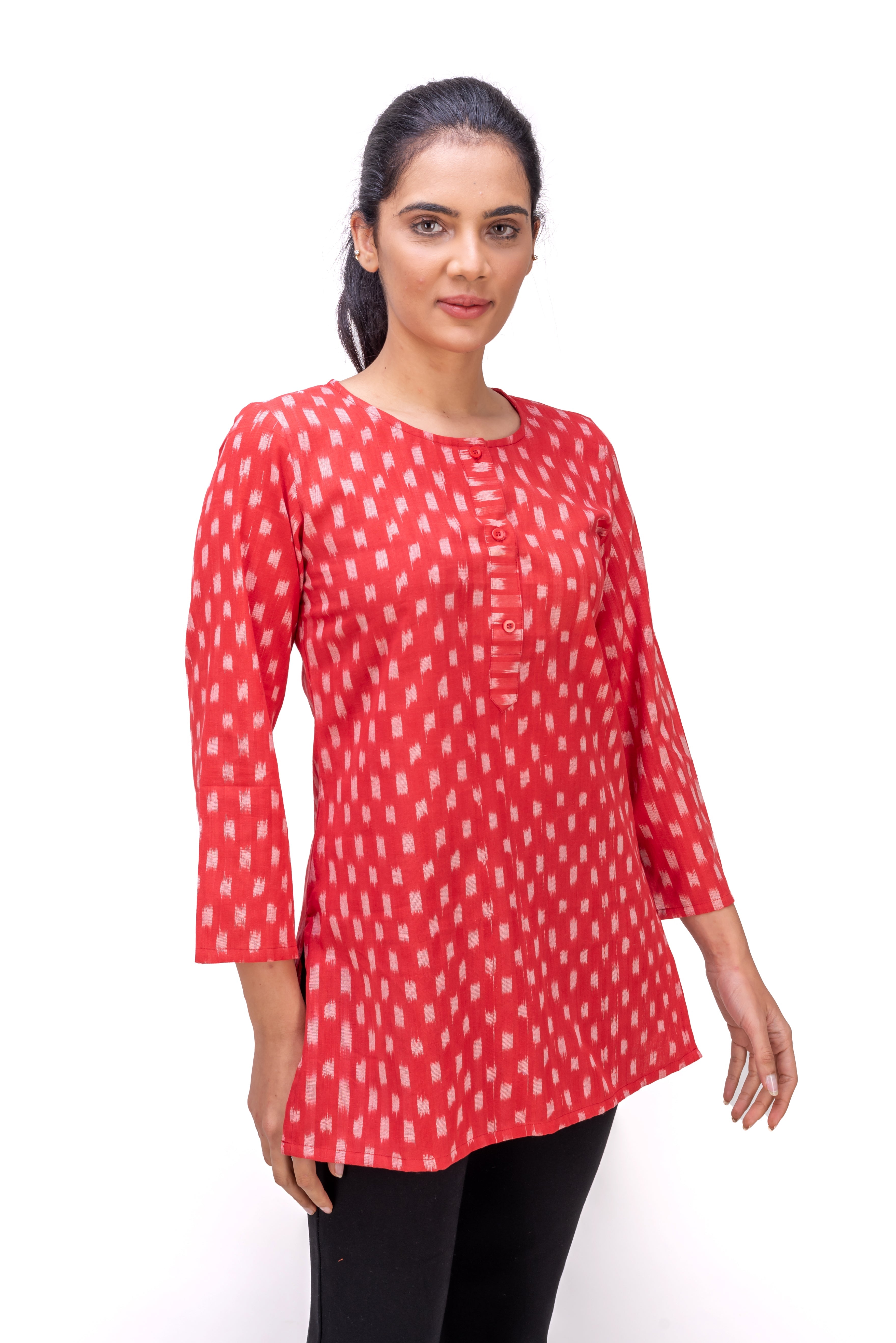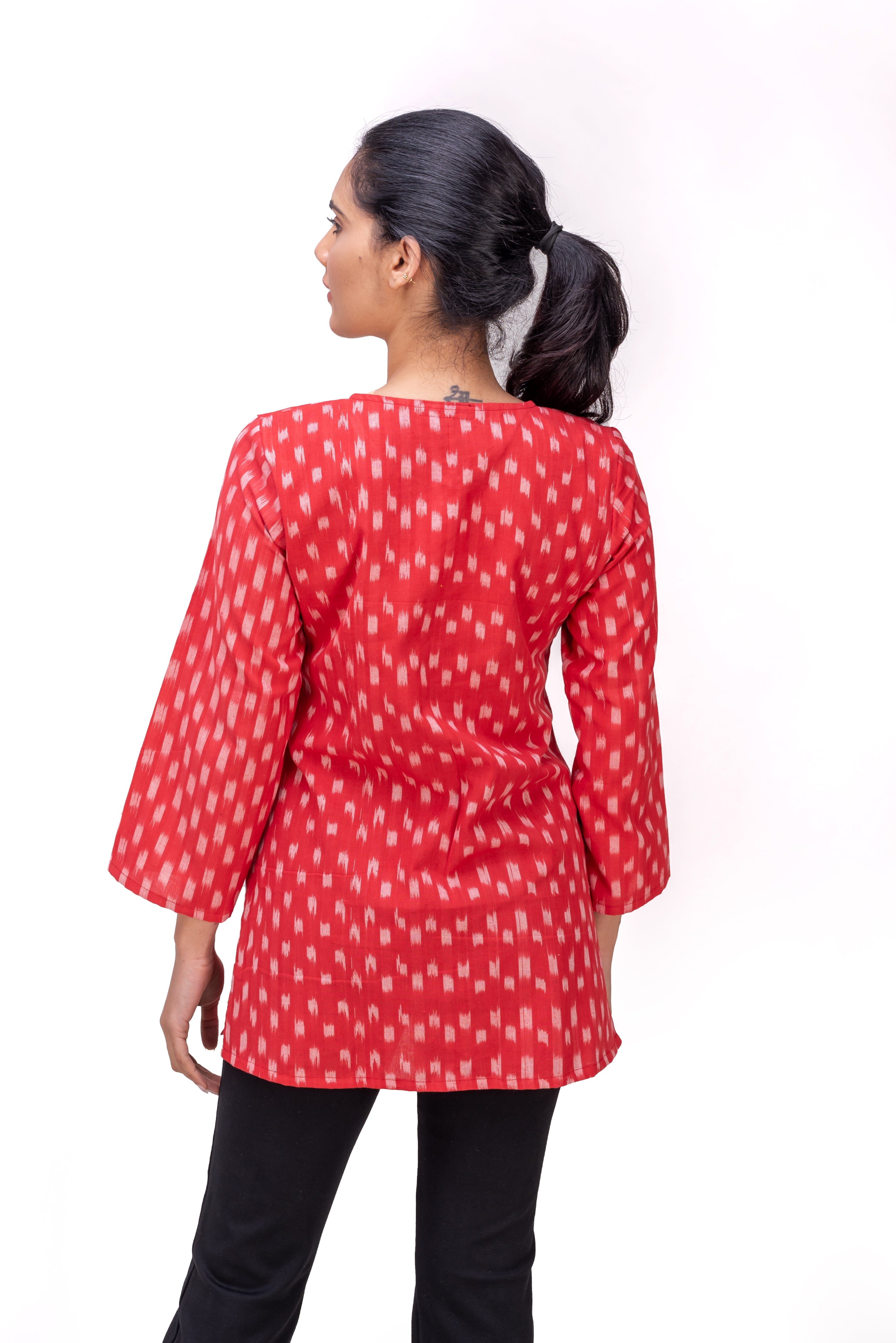 Redish Shirt Dress is made with breathable hand loomed fabric called Ikat.
