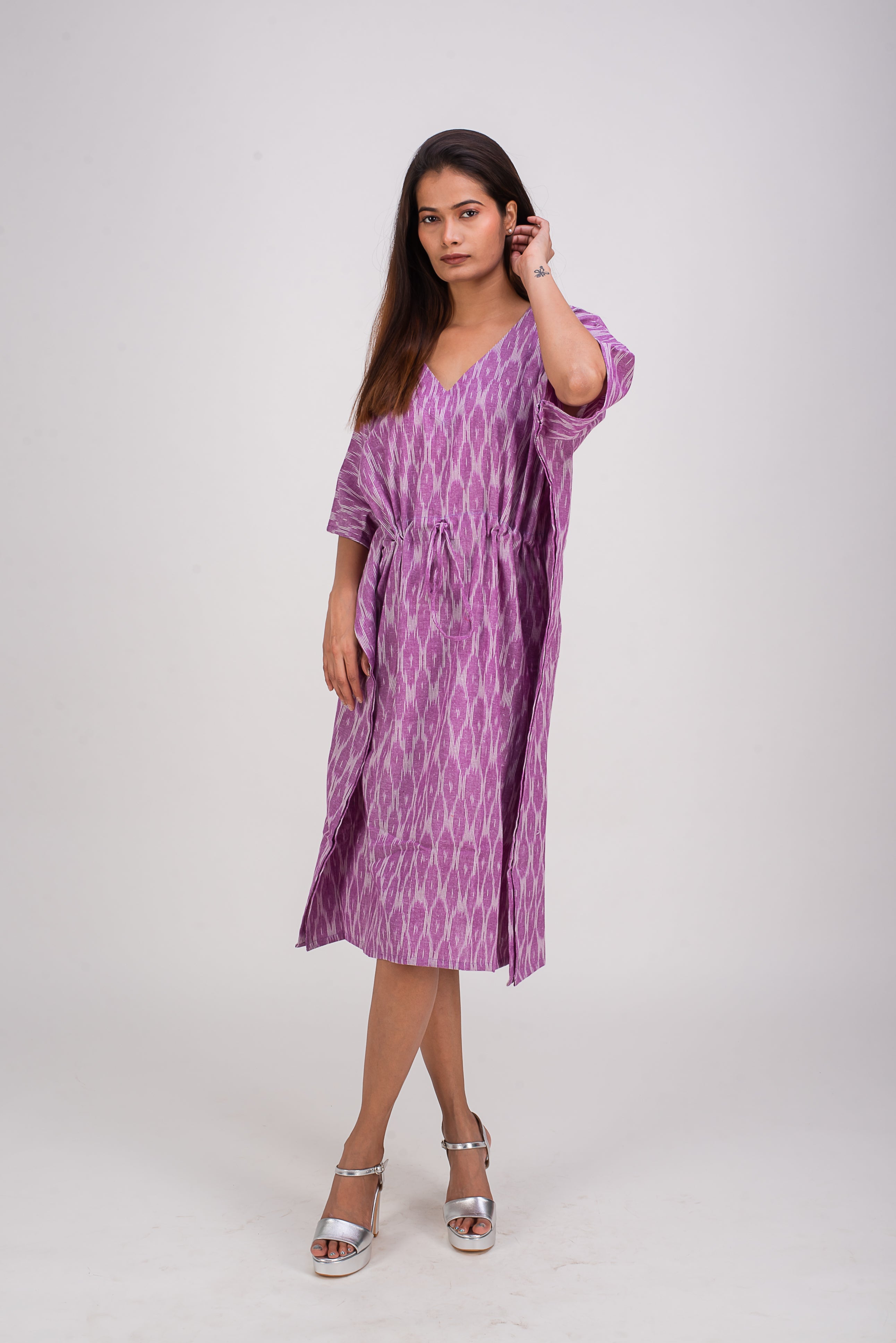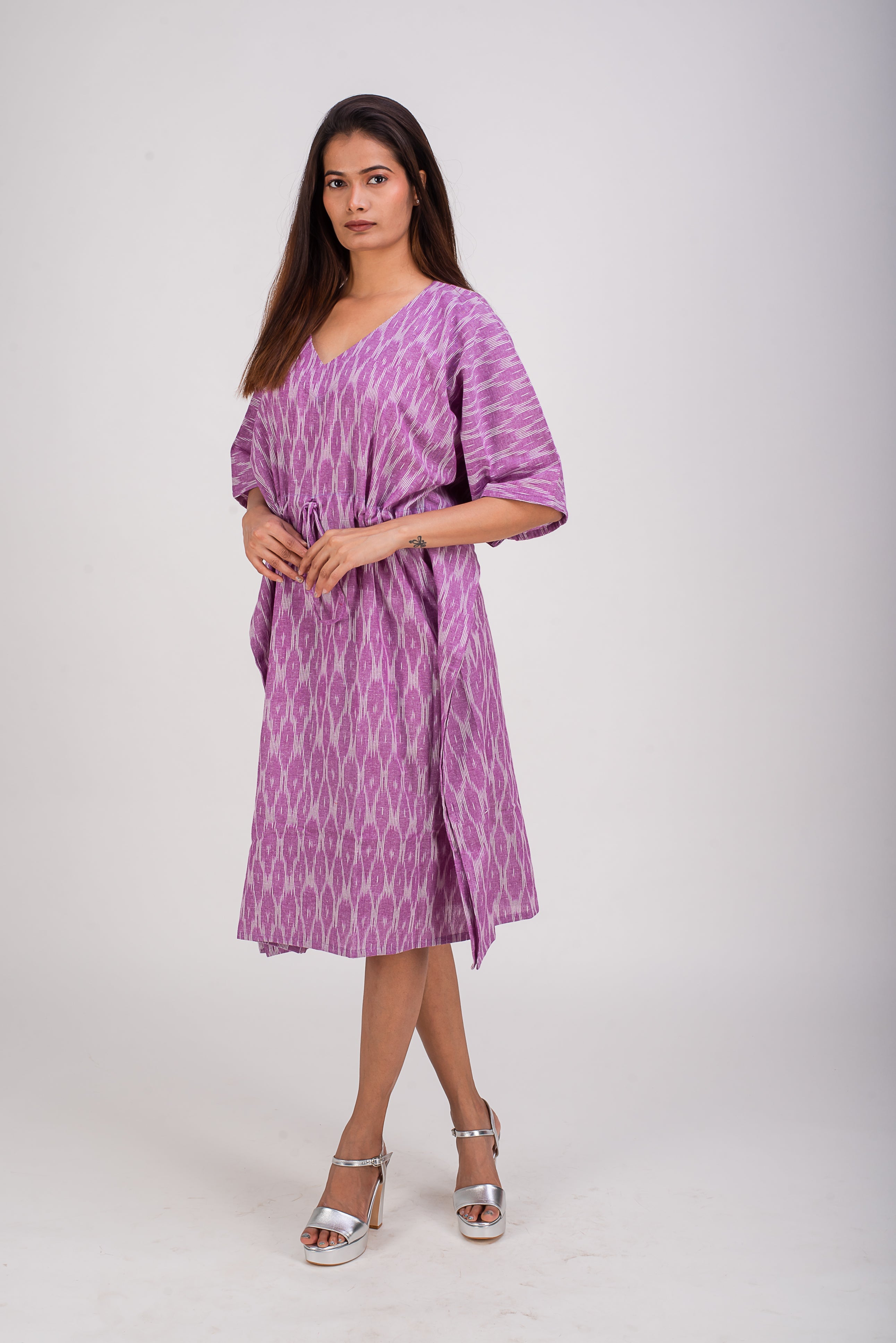 Chill in this breezy free size kaftan for a mid summer barbeque or stroll at the beach. A soft cotton knee length kaftan is practical and comfortable that is sure to remind you to take a break!