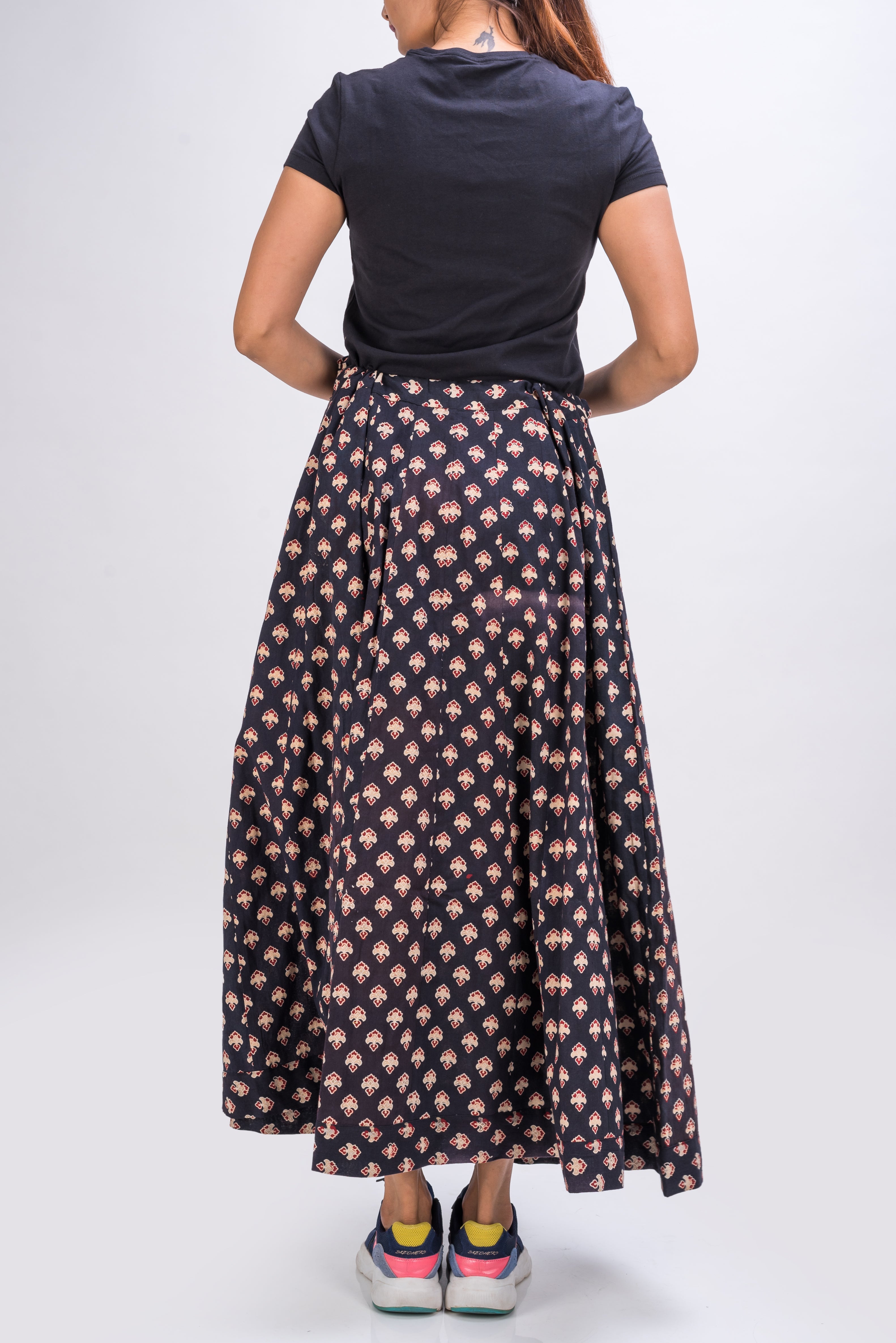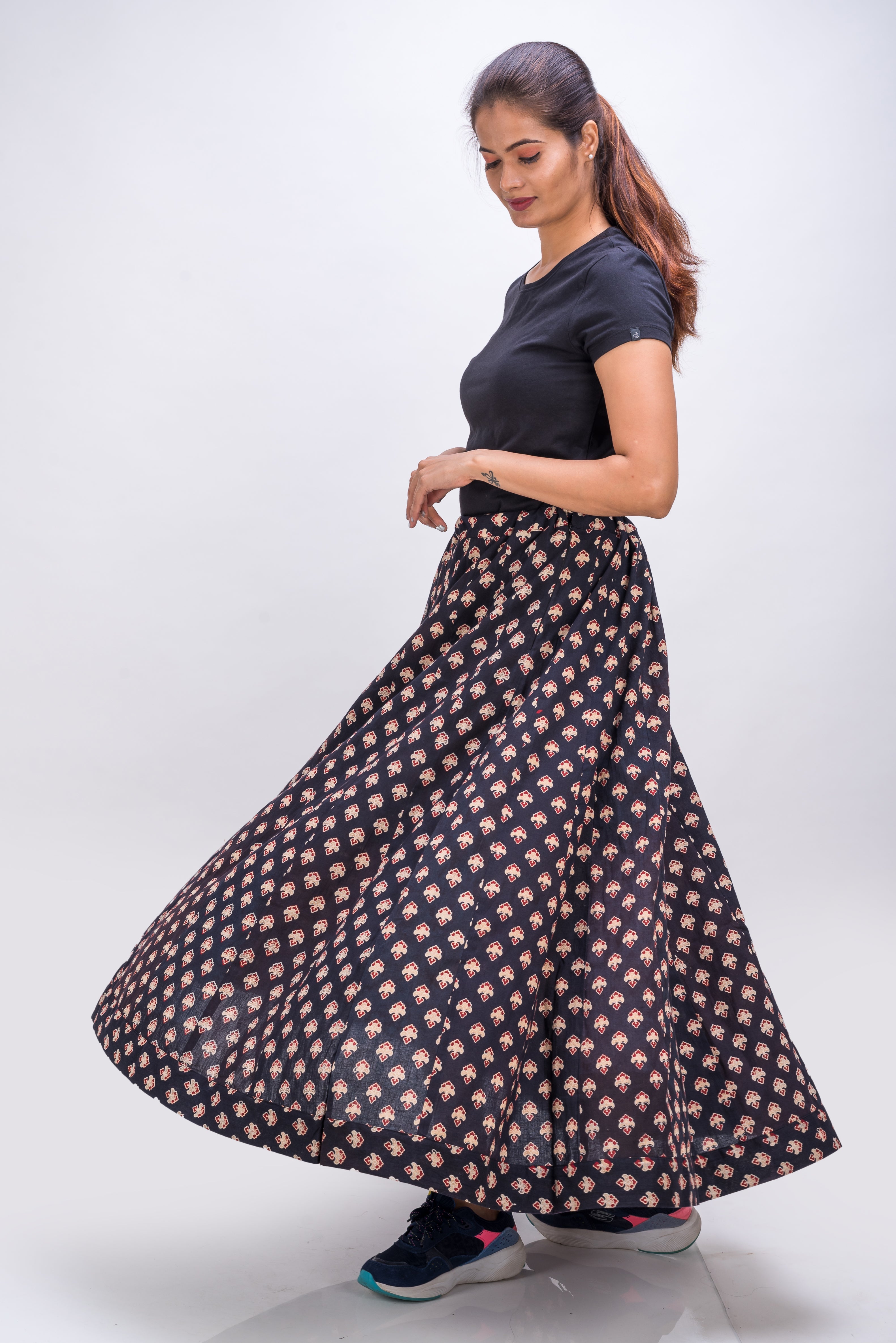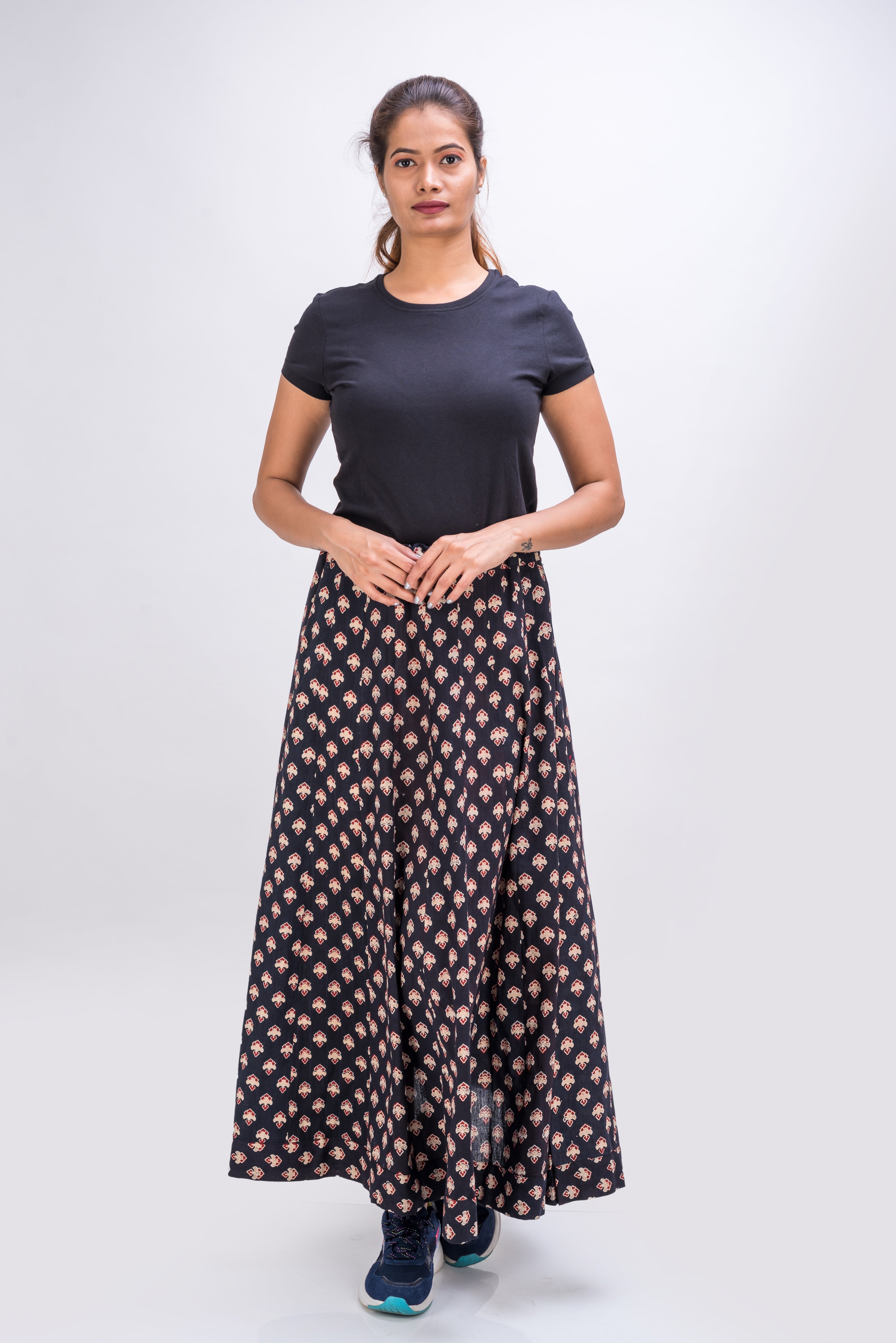 A modern twist to a tradition Indian skirt! Be inspired by this lovely paneled long skirt that is skillfully designed to enhance your figure. The narrow panels at the waist gives illusion of smaller waist and making you look and feel elegant.