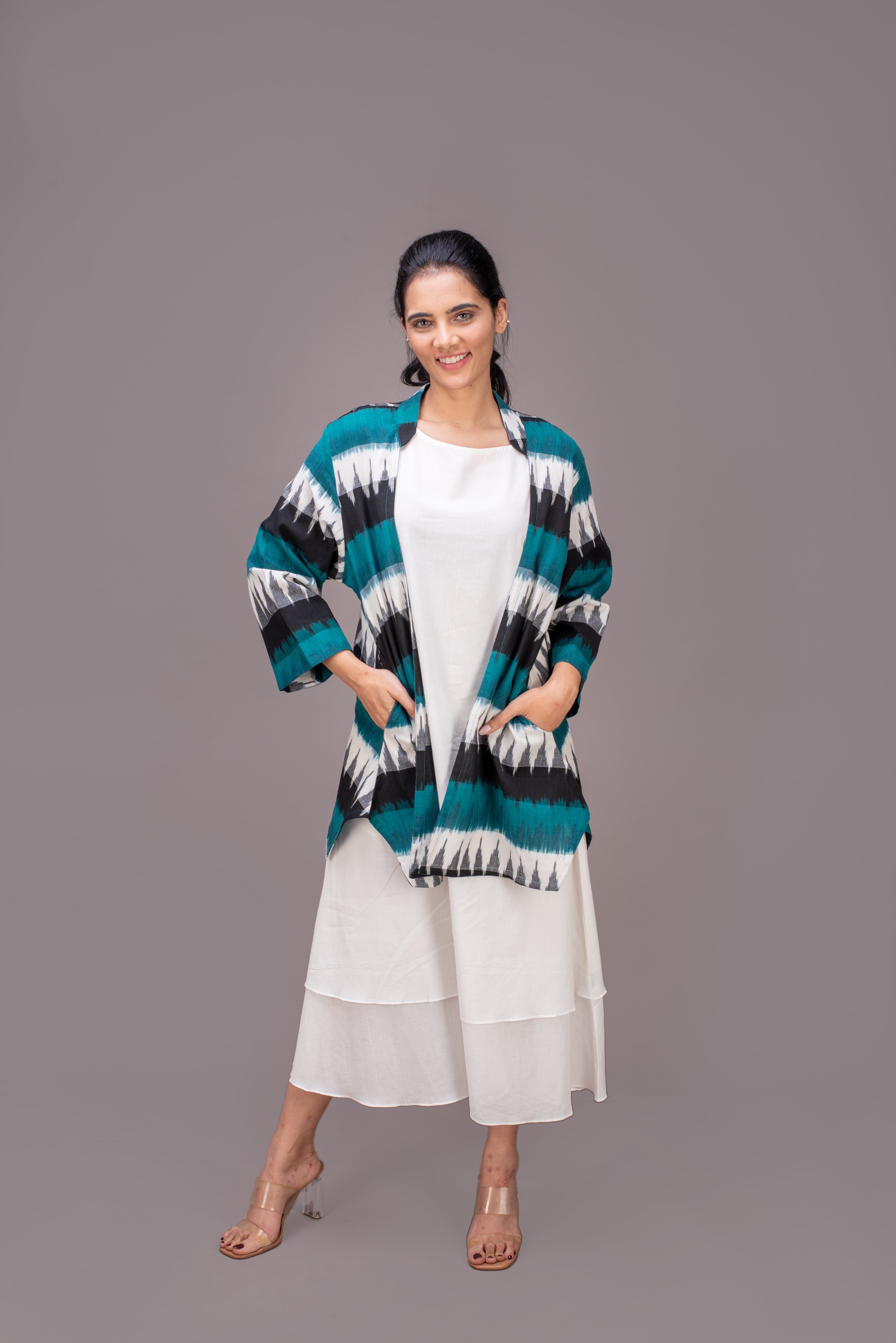 Versatile and gorgeous kimono adds a touch of Midas to anything you wear. A classic Kimono Jacket with loose fitting long sleeve and a Chinese collar makes you look savvy. Wear it on a chilly evening as a cardigan or on shorts and make a statement.