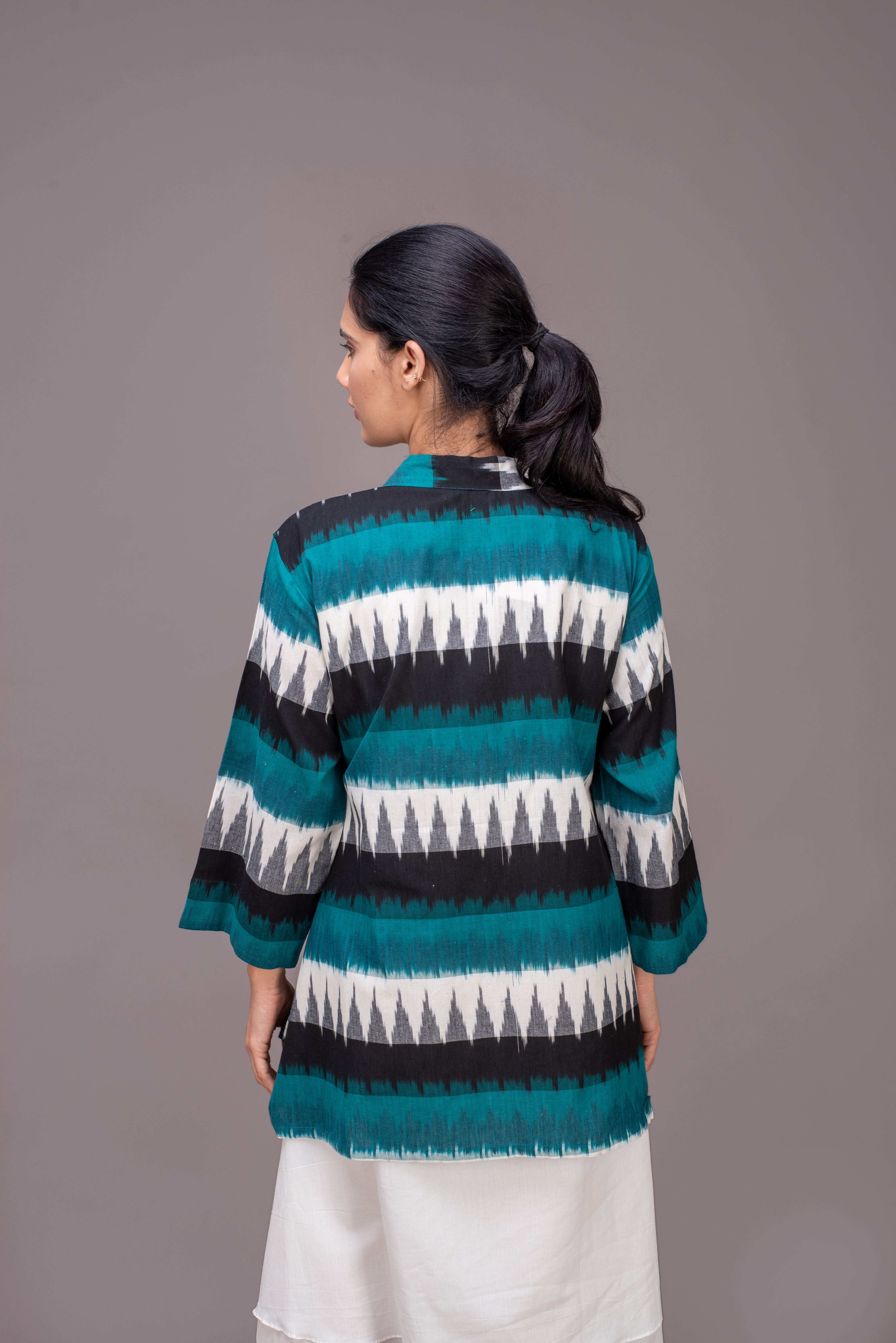 IKAT is a specialized weaving method that uses pre dyed cotton yarn. The yarn is dyed in predetermined patterns using a resist dyeing method. At the time of weaving these patterns come together to form the final design.