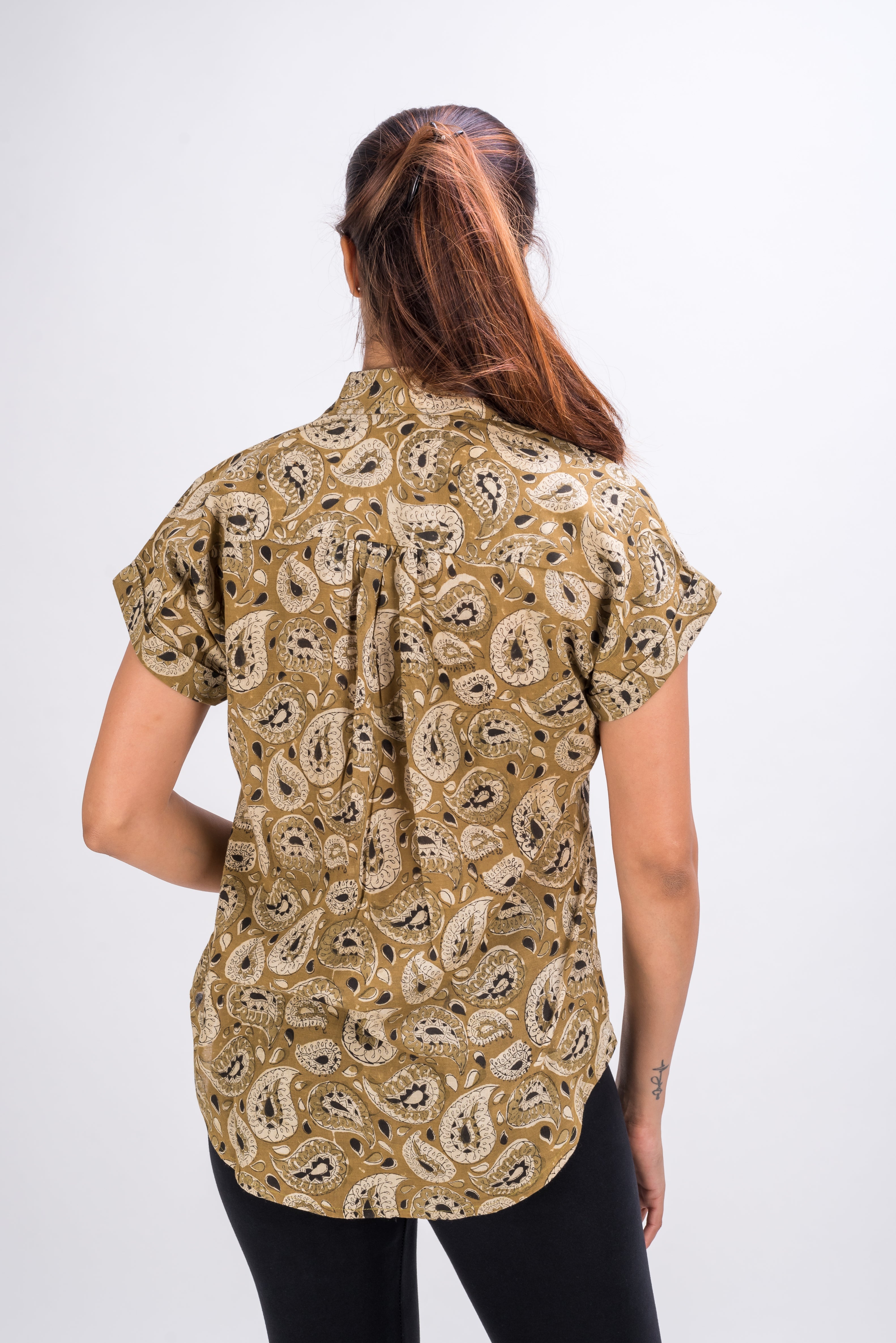 Paisley block printed fabric is made in traditional Kalamkari art of fabric printing in natural plant based dyes.
