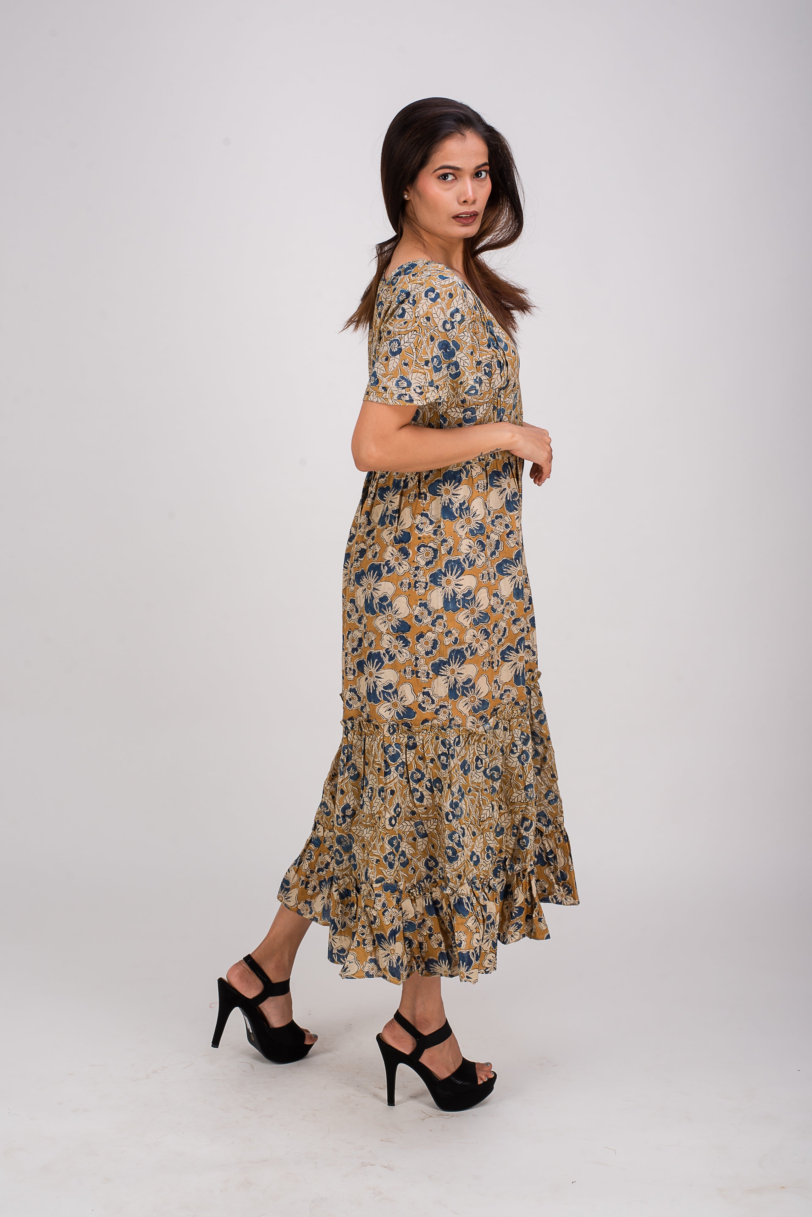 Cozy up in this country style long max. Elegant and comfortable maxi dress is perfect for a spring afternoon or warm summer evenings. Wear it as a day dress or for an evening stroll or better still dance the night off !