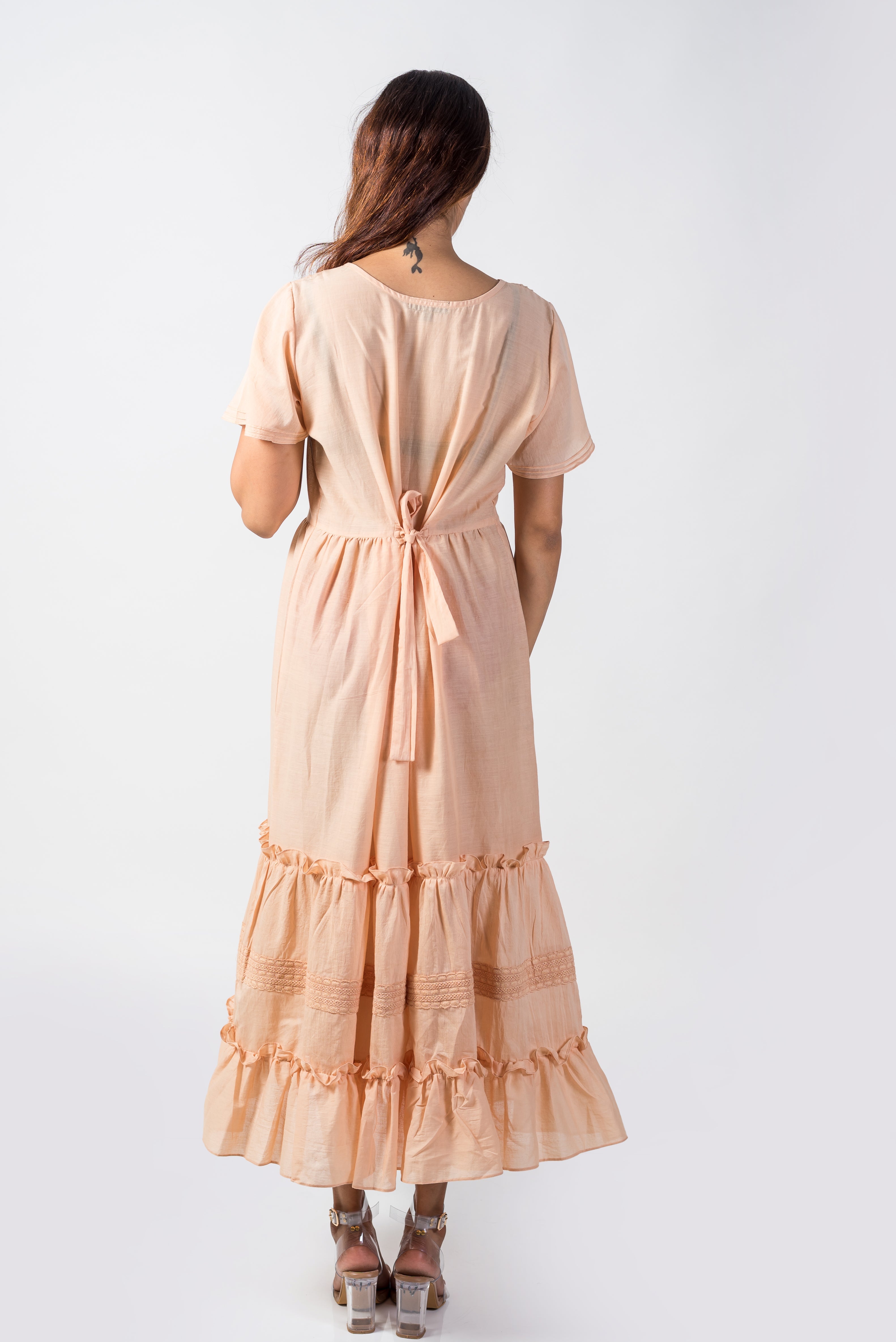 Make a style statement in this darling ruffled neck tiered long maxi. Elegant and fun maxi dress...