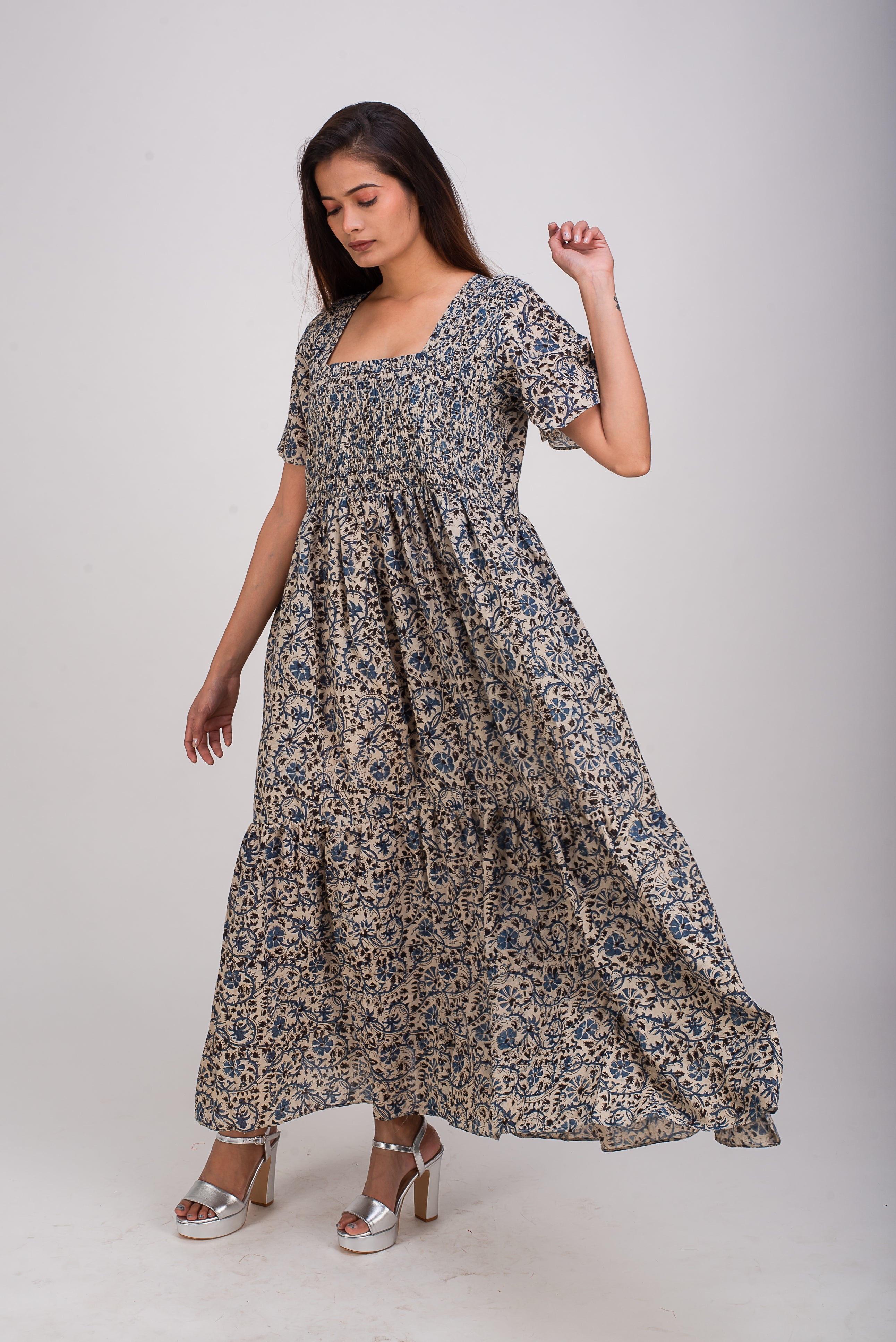 You are the princess of your world. Don’t let anyone tell you otherwise. Feel like the princess in this fairy tale inspired maxi dress. The bodice is detailed with elegant smocking, enhancing your bust and waist.