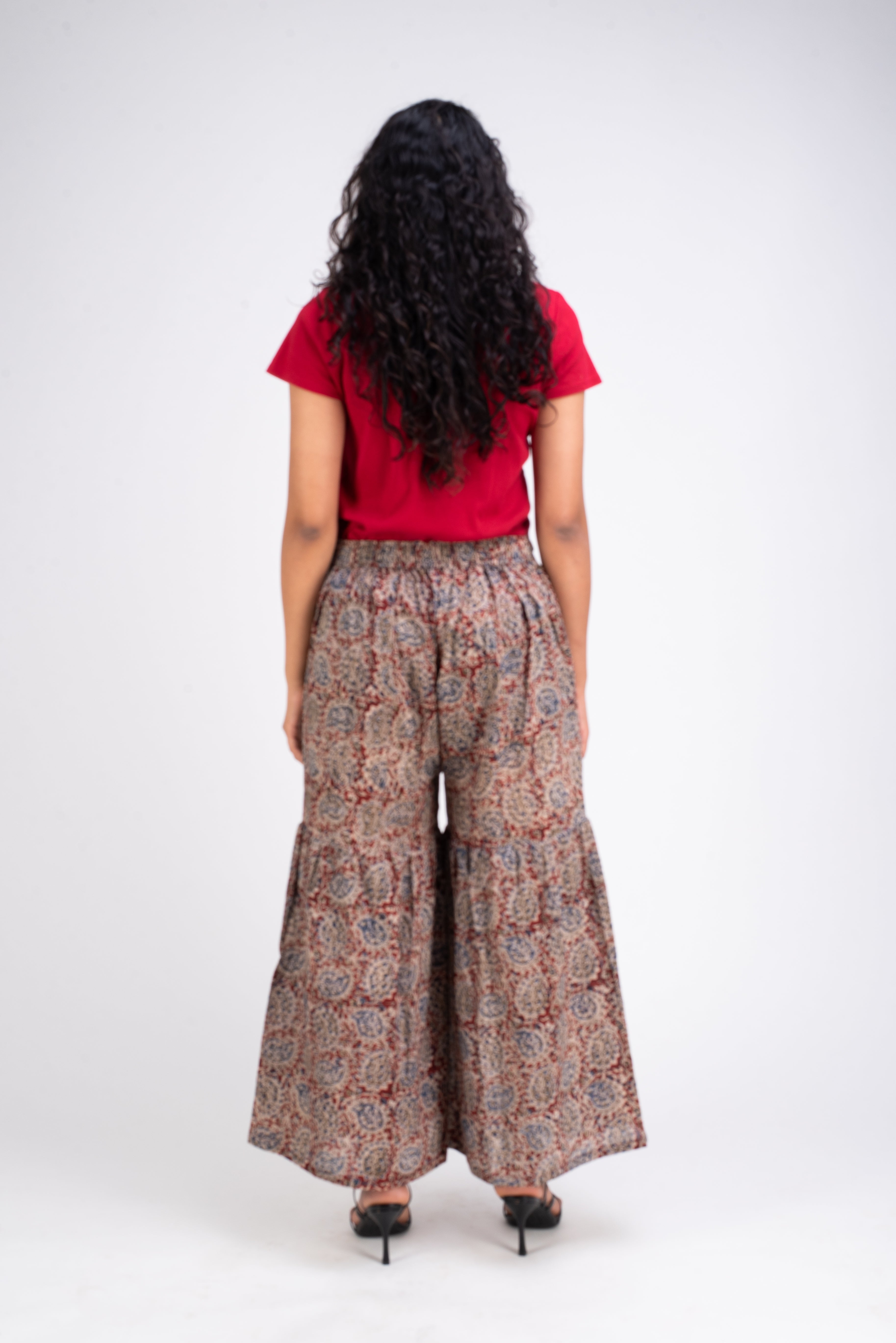 Explore your adventure side looking elegant and feminine in this comfortable pants. Stylish and elegant flared pants with gathers at the knee are inspired by skirt pants. This stylish pant has an adjustable elastic waist with draw string.