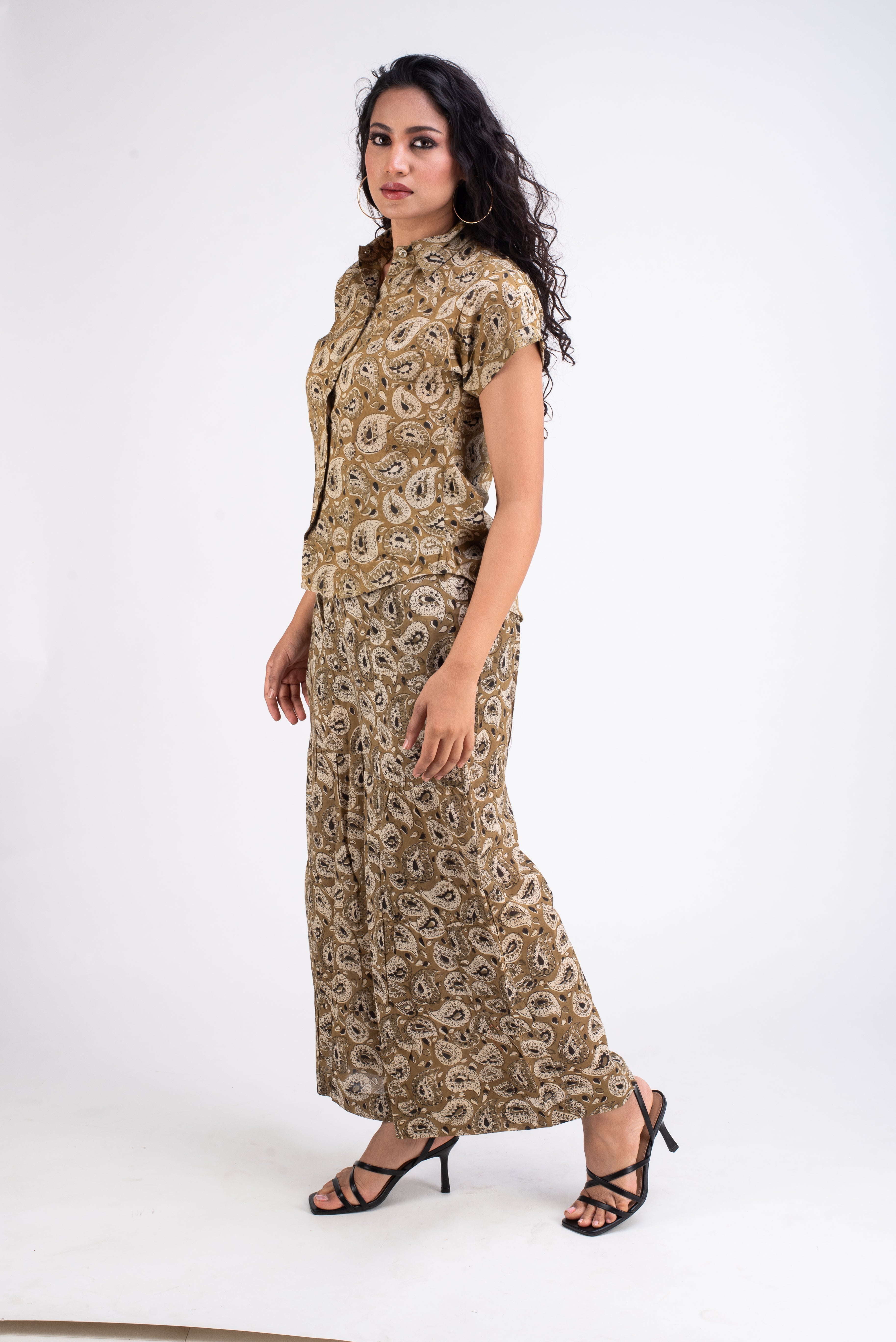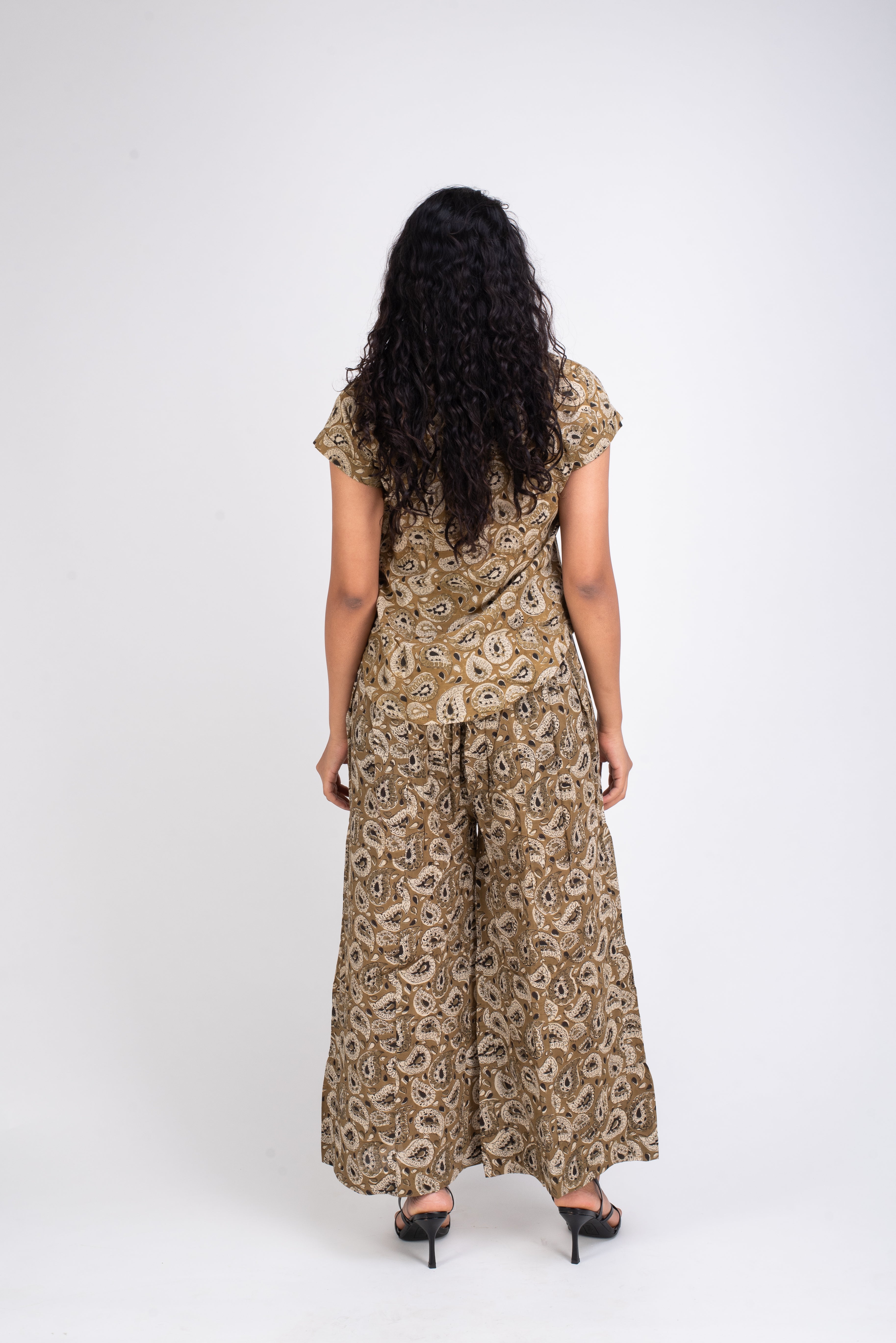 Moss green fall print is block printed using vegetable dyes by hand on a delicate soft light weight mulmul fabric.