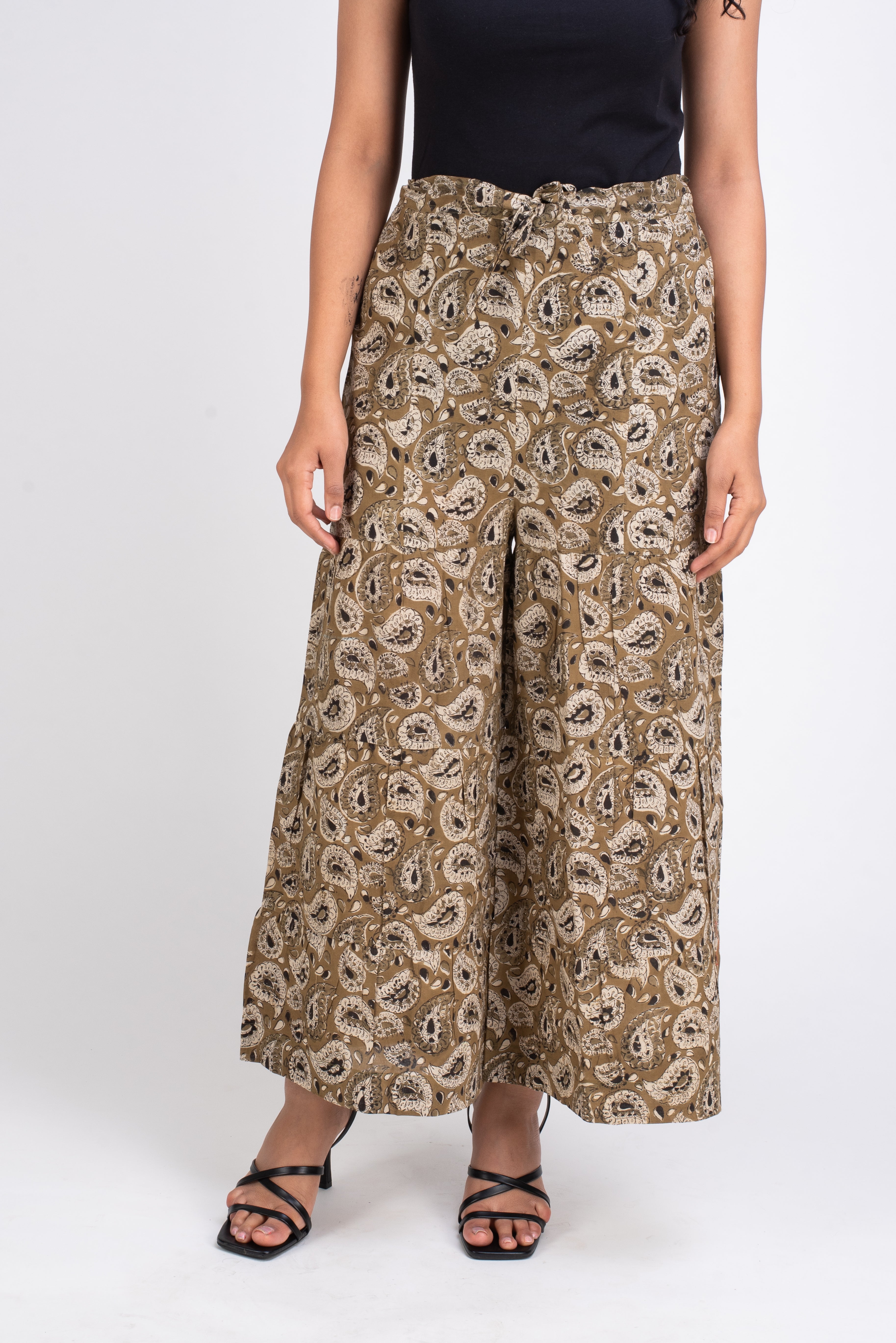 Side tiered flared pants are a must have this season. Crafted to feel comfortable and chic, these pants can be worn on a festive occasion or to work. This stylish pant has an adjustable semi elastic waist with draw string and two pockets.
