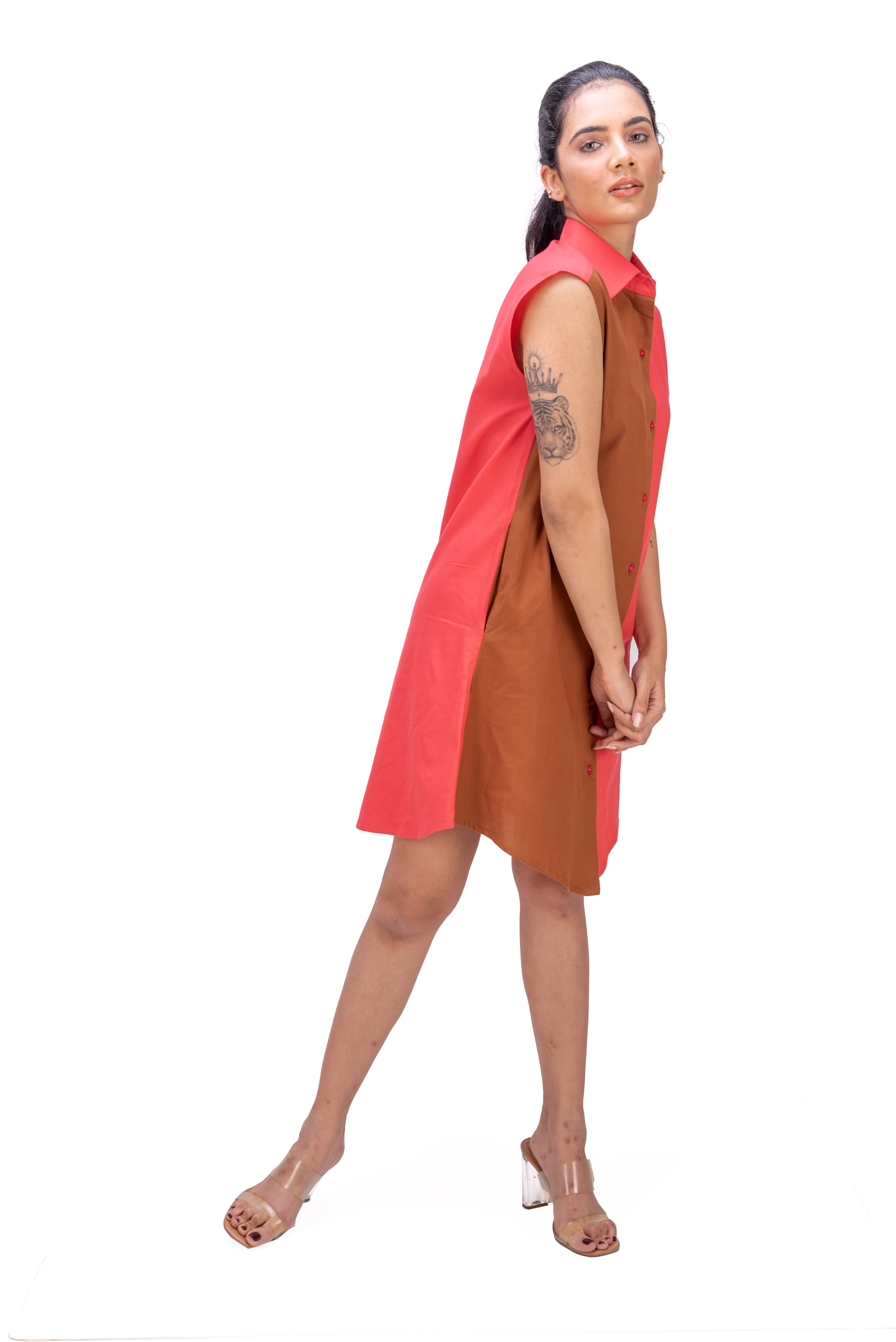 Get rocking in the dual colored fashionable sleeveless shirt dress. A loose fitting button down long shirt can be worn as shirt dress or can be paired with pants. A luxurious shirt designed for comfort is a must on a sultry afternoons or cool evenings.
