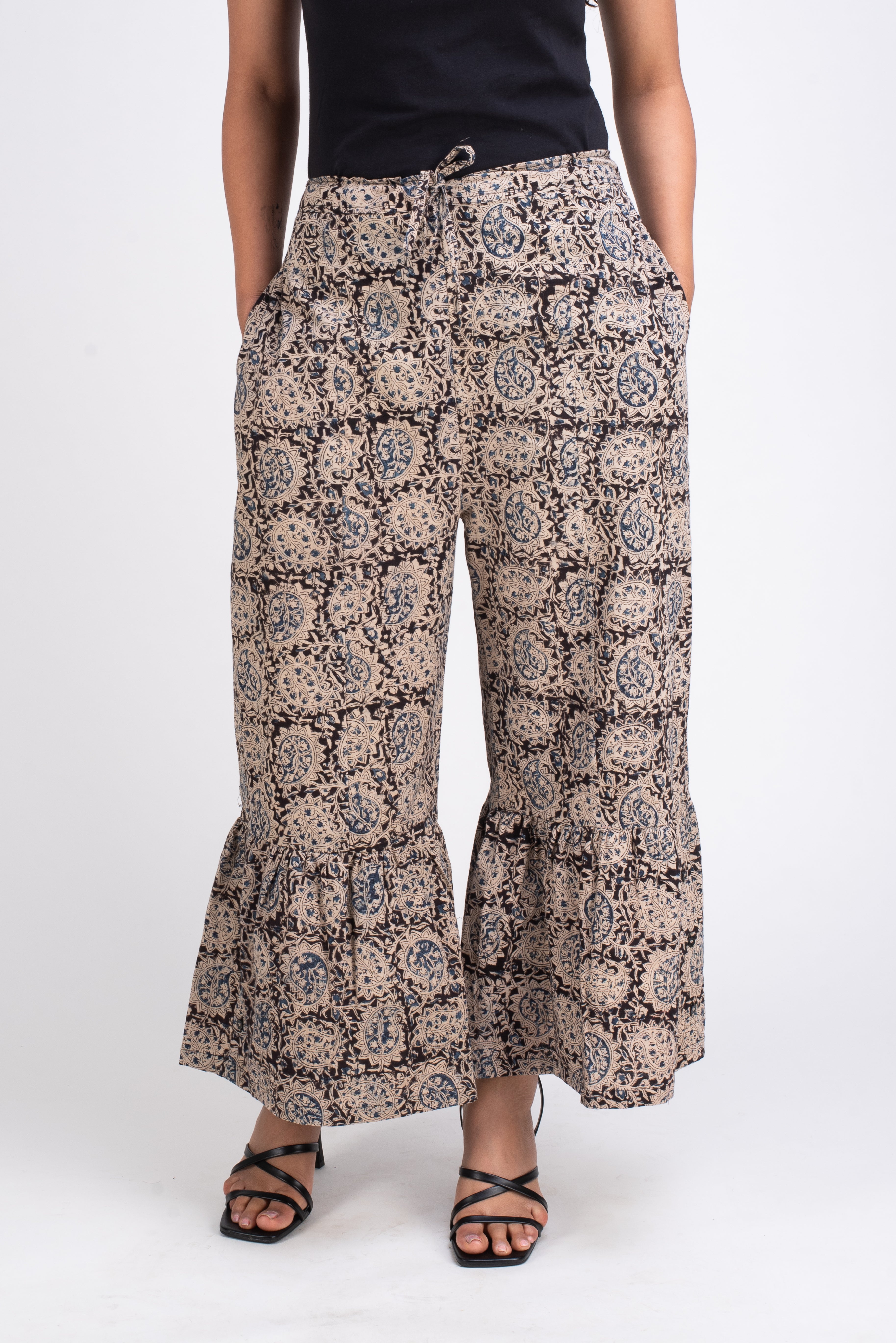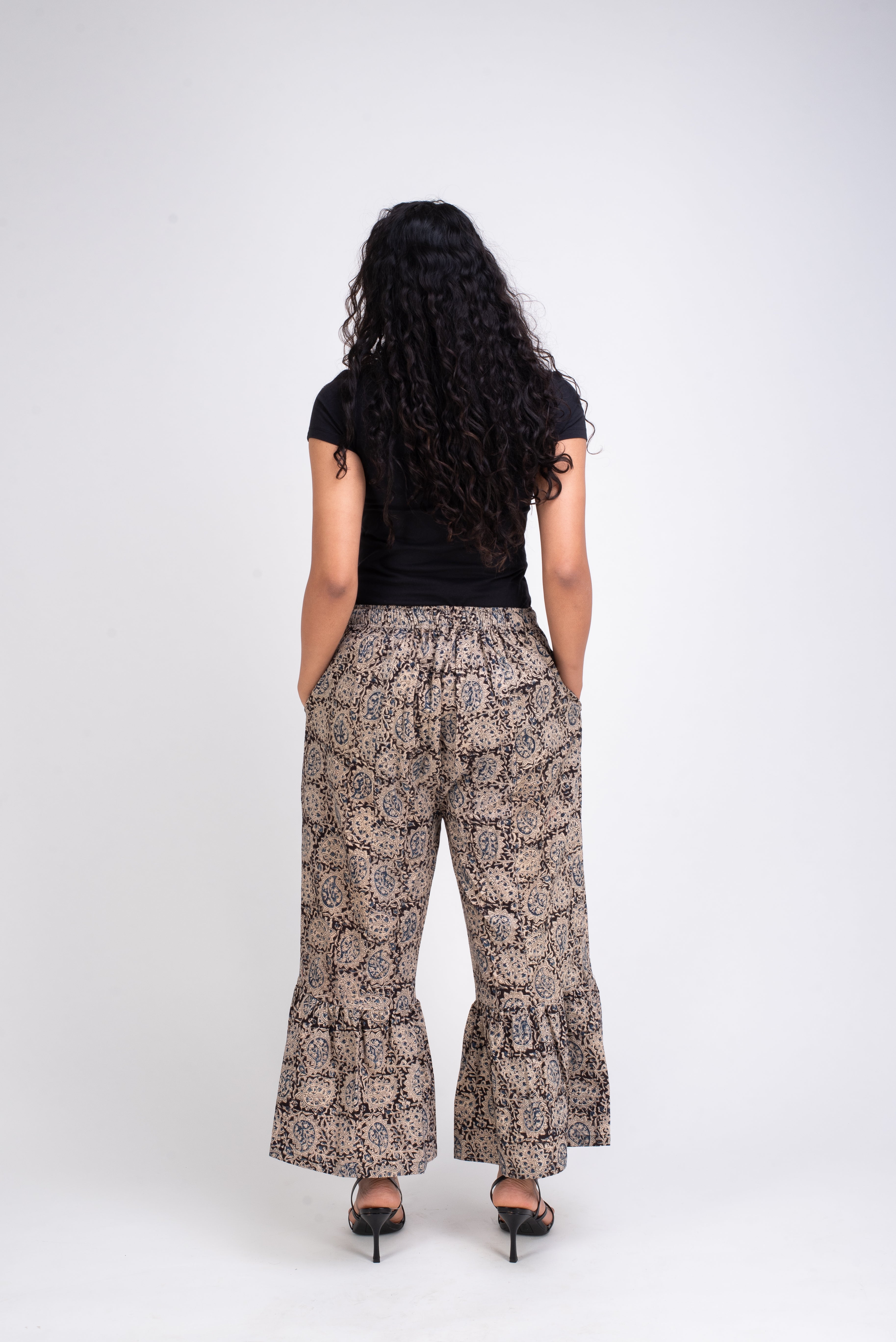Hot pants with a twist is the talk of the town. Be seen is this trendy ruffled bell bottoms at any venue or event. This stylish pant has an adjustable elastic waist with draw string and side pockets that are handy and stylish.