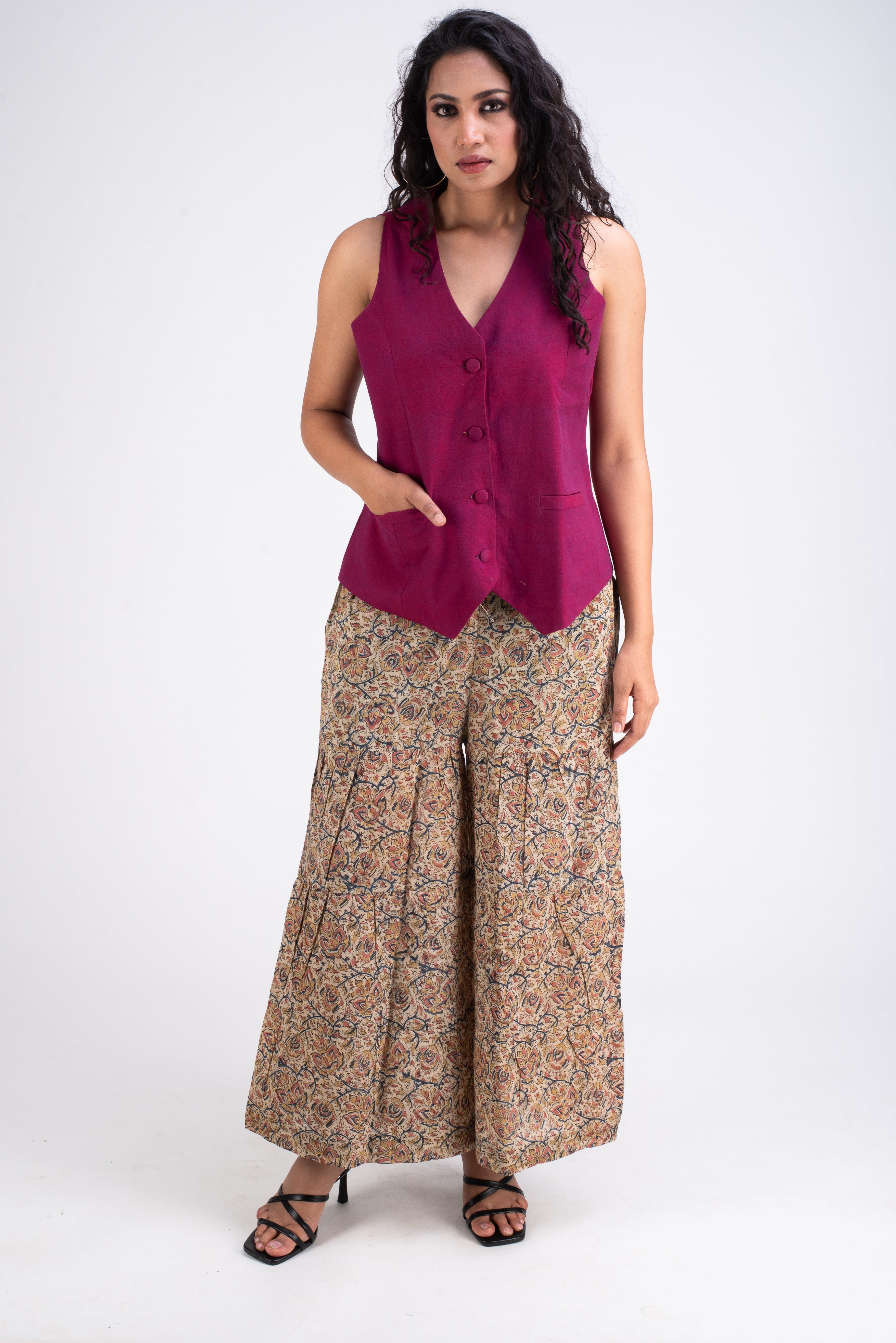 Side tiered flared pants are a must have this season. Crafted to feel comfortable and chic, these pants can be worn on a festive occasion or to work. This stylish pant has an adjustable semi elastic waist with draw string and two pockets.