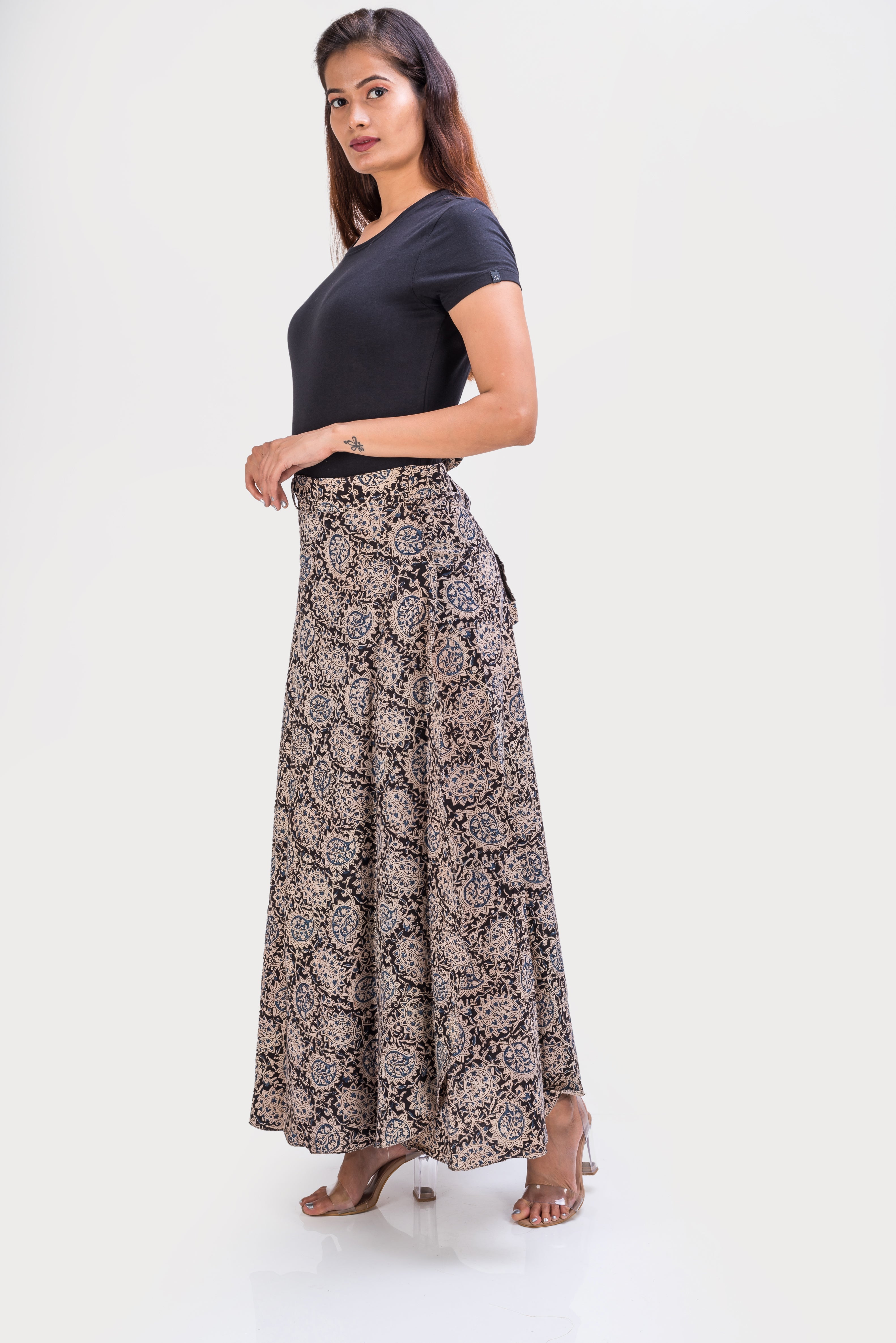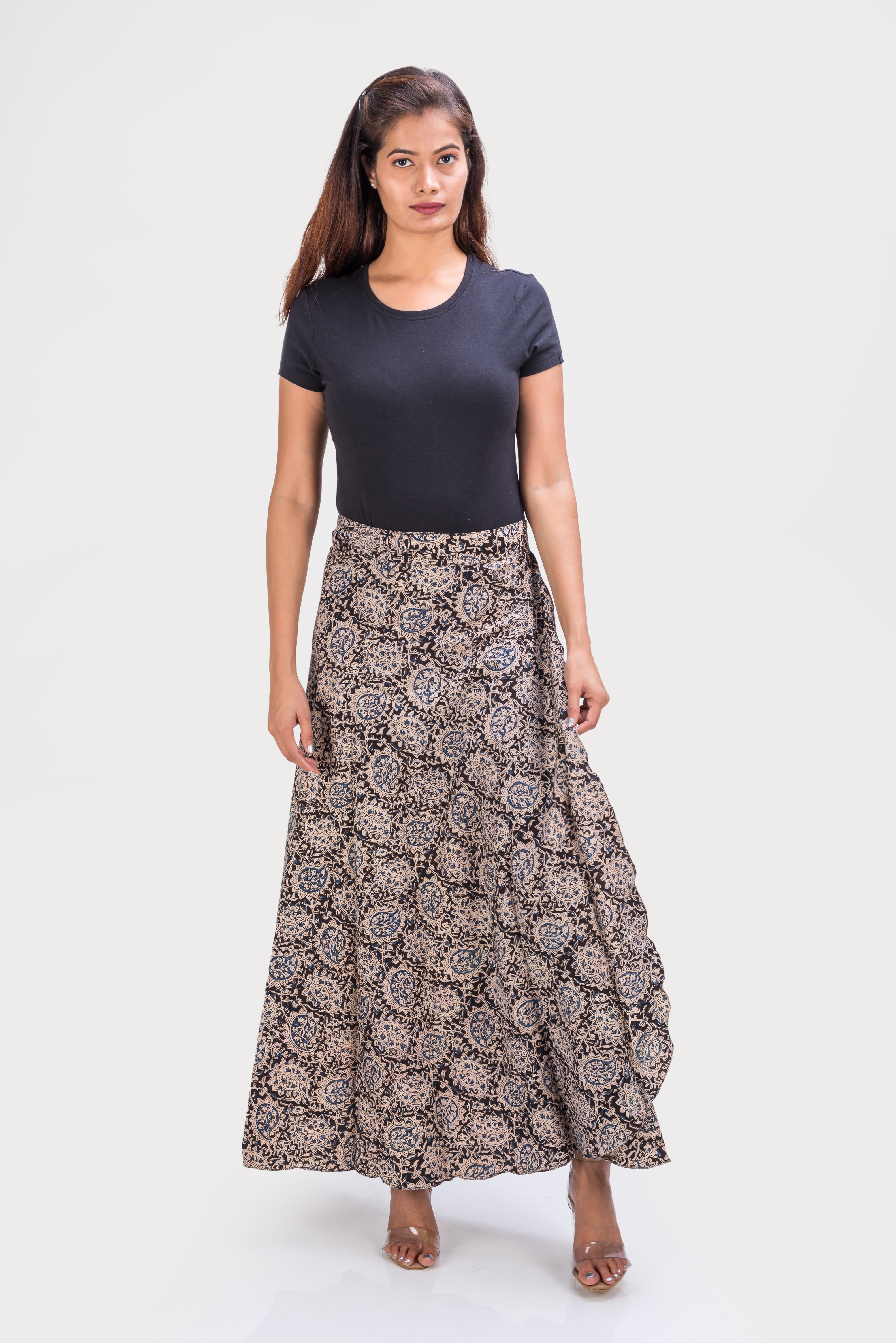 Kalmakari is a traditional art of hand printing using wooden blocks and plant based dyes. This complex and highly skilled art of fabric printing is practiced by some communities in India. Pomegranate peel, iron scrap, turmeric, Jaggrey, salt etc are used to make the vegetable dyes. After printing each color the fabric is boiled using leaves, flowers and barks and sun dried to resume printing. The printed fabric is finally washed in the flowing river waters. The depth and speed of water flow determines the brightness of the colors. Small smudges and other minor Imperfections are normal and a testimony to the fact that the printing is entirely done by hand.